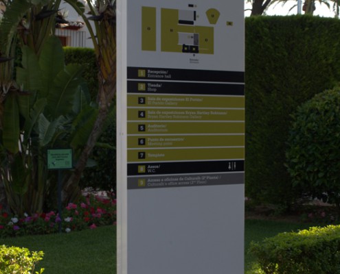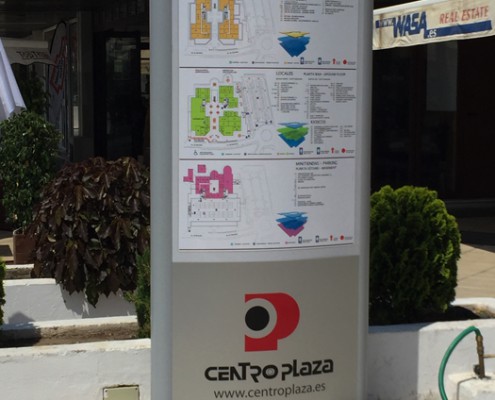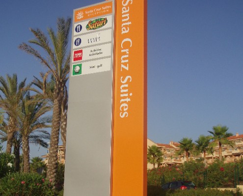 Fabricación de totems personalizados para señalización vertical. Al estar en el exterior están expuestos a las inclemencias del tiempo, son muy importantes los materiales y acabados que se emplean para su fabricación.